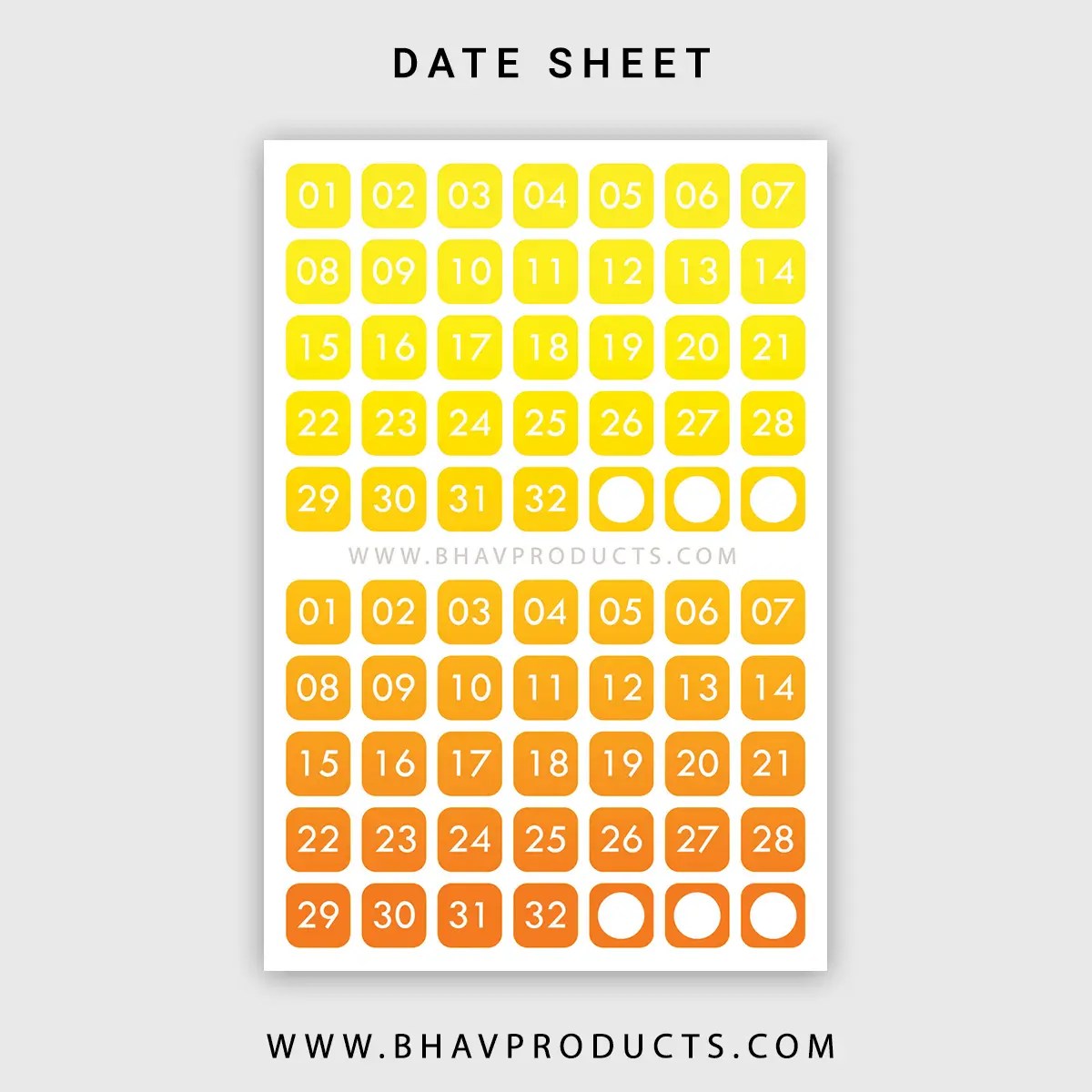 Date Sticker English (2 months in 1 Sheet) – Gradient Yellow