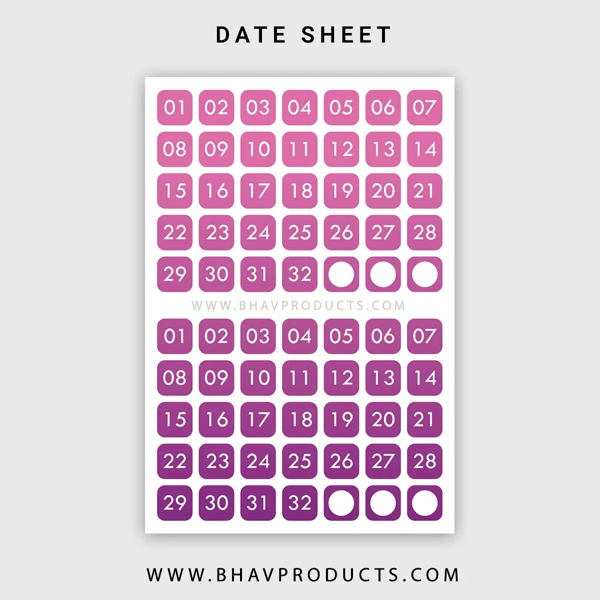 Date Sticker English (2 months in 1 Sheet) – Gradient Pink